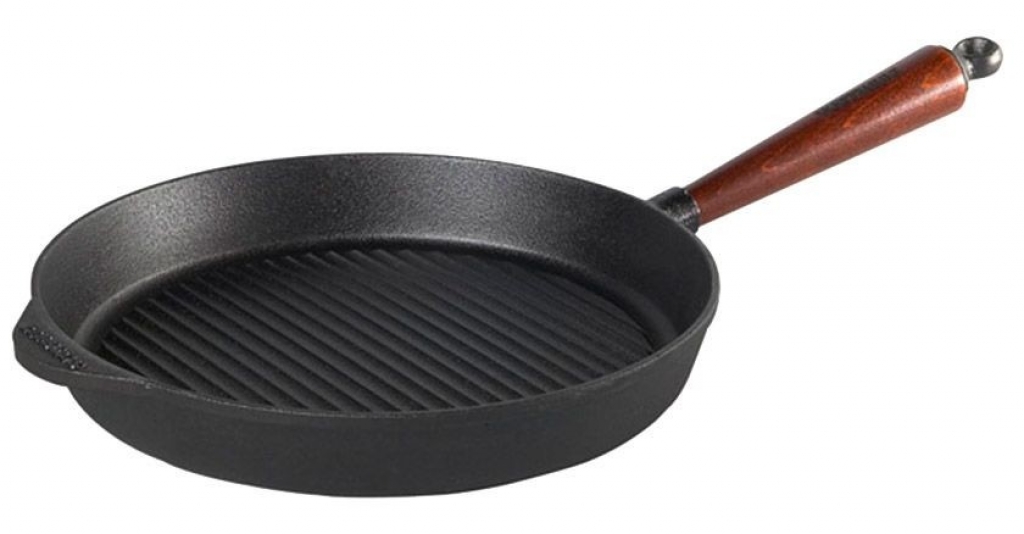 En tungviktare med rejäl stekyta! Det snygga, avfasade trähandtaget gör den lätthanterlig, och upphöjningarna i botten ger riktigt fina grillränder. Pannan har ett litet hjälphandtag som kommer väl till pass när det är dags att ta tag i disken. En nackdel är att pannan av oförklarlig anledning osar en hel del.