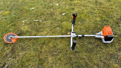 Grästrimmern jobbar med plastknivar istället för den traditionella linan, och knivarna klarar av det mesta som kommer i deras väg. De slits dock relativt fort, men är enkla att byta ut.