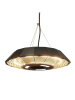 En hängande terrassvärmare hänger du upp precis som en lampa i taket och ger värme åt flera håll. Det kan till exempel vara i uterummet eller i pergolan (se till att den har rätt IP klassning)